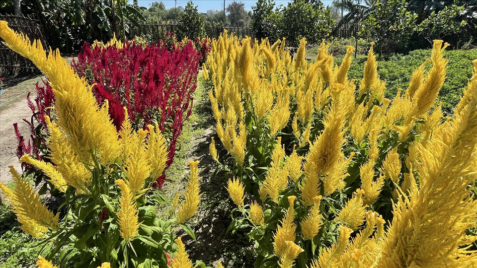 Những ngày này, dọc các con đường ở xã Tiến Lợi, TP.Phan Thiết, Bình Thuận, các vườn hoa Tết đang khoe sắc đỏ, vàng rực rỡ. Với hơn 20 năm kinh nghiệm trồng hoa Tết, ông Phạm Tấn Hưng đã chia vườn nhà thành nhiều khu trồng các loại hoa như mồng gà, long phụng, vạn thọ, hướng dương.
